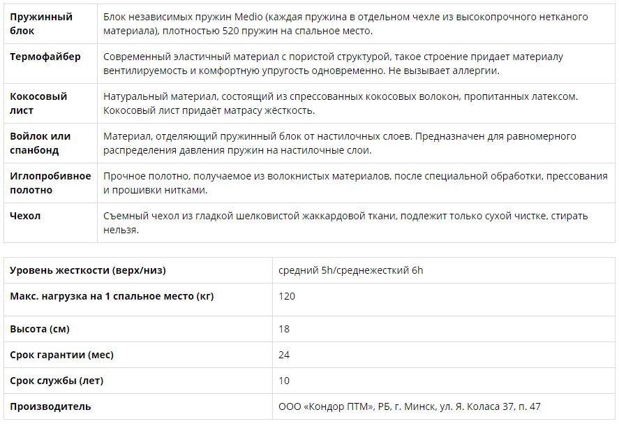 Высота матраса: 25 см. Жесткость: ниже/выше средней.