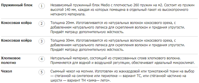 Высота матраса: 31 см. Жесткость: средняя/жесткий.