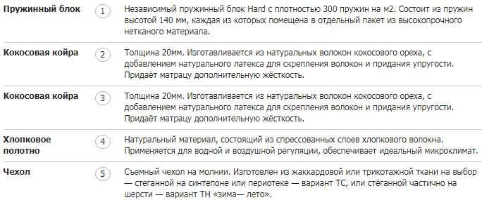 Базовый блок матраса: Блок независимых пружин Hard.