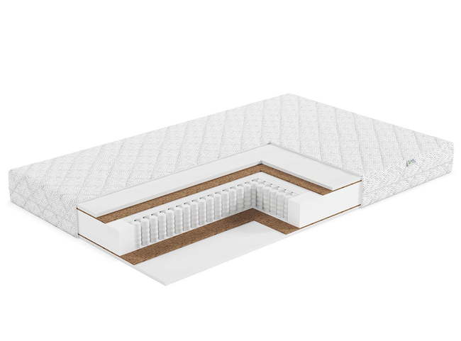 Натуральный гипоаллергенный материал. Благодаря пропитке из натурального латекса, волокна прочно скреплены в цельную плиту. Кокосовое волокно придает матрасу жёсткость и обладает бактерицидными свойствами. Производство – Enkev, Польша.