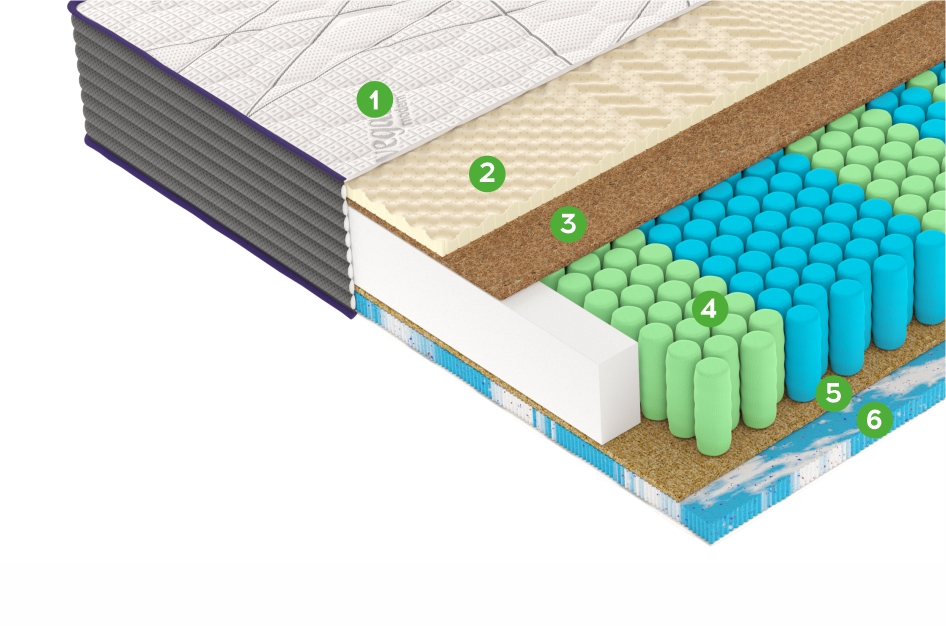 Комбинированный пружинный блок с двумя зонами, слои кокоса и термофайбера.
