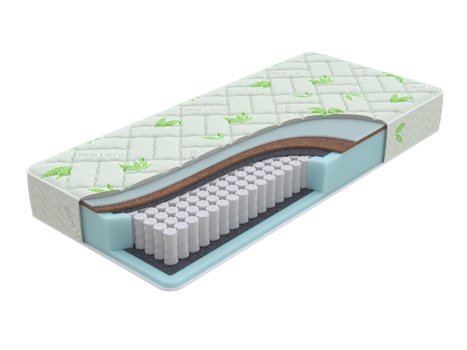 Матрас среднежесткий, внутри блок независимых пружин, кокосовое волокно и термофайбер.