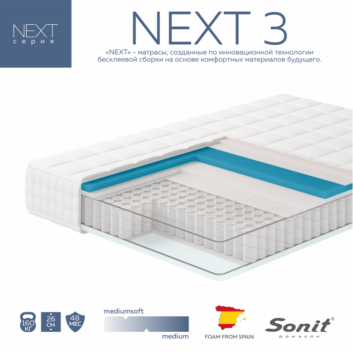Высота: 180 мм. Уровень жесткости: среднемягкий/мягкий.