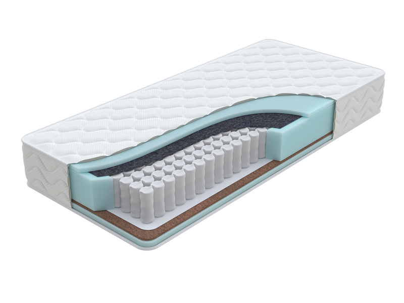 Жесткий ортопедический матрас с блоком независимых пружин и кокосом. Высота: 19 см.