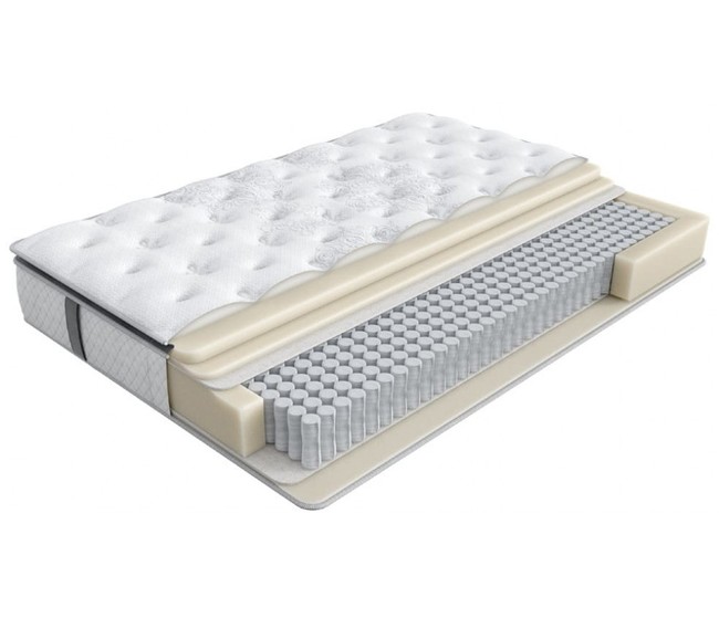 В основе матраса находится независимый пружинный блок Serta Support System. Каждая пружина блока изолирована чехлом из спанбонда и точечно воспринимает нагрузку. Конструкция из независимых пружин очень подходит для двуспальных матрасов. Движения одного человека не потревожат сон другого. С обоих сторон пружинный блок изолирован слоем натурального льна.
