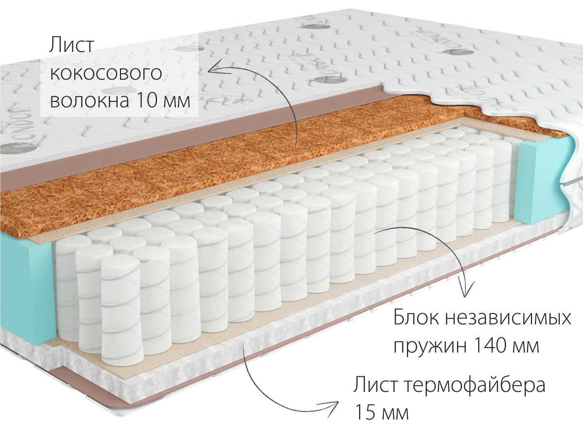Основа матраса: Блок независимых пружин Medio, высота 140 мм.