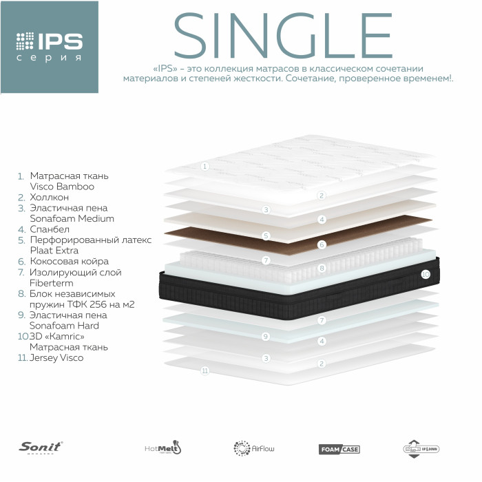 Жесткость: средняя/низкая. Высота: 250 мм.