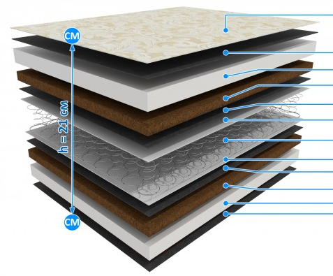 Съемный чехол из жаккардовой ткани. Высота матраса 21 см.