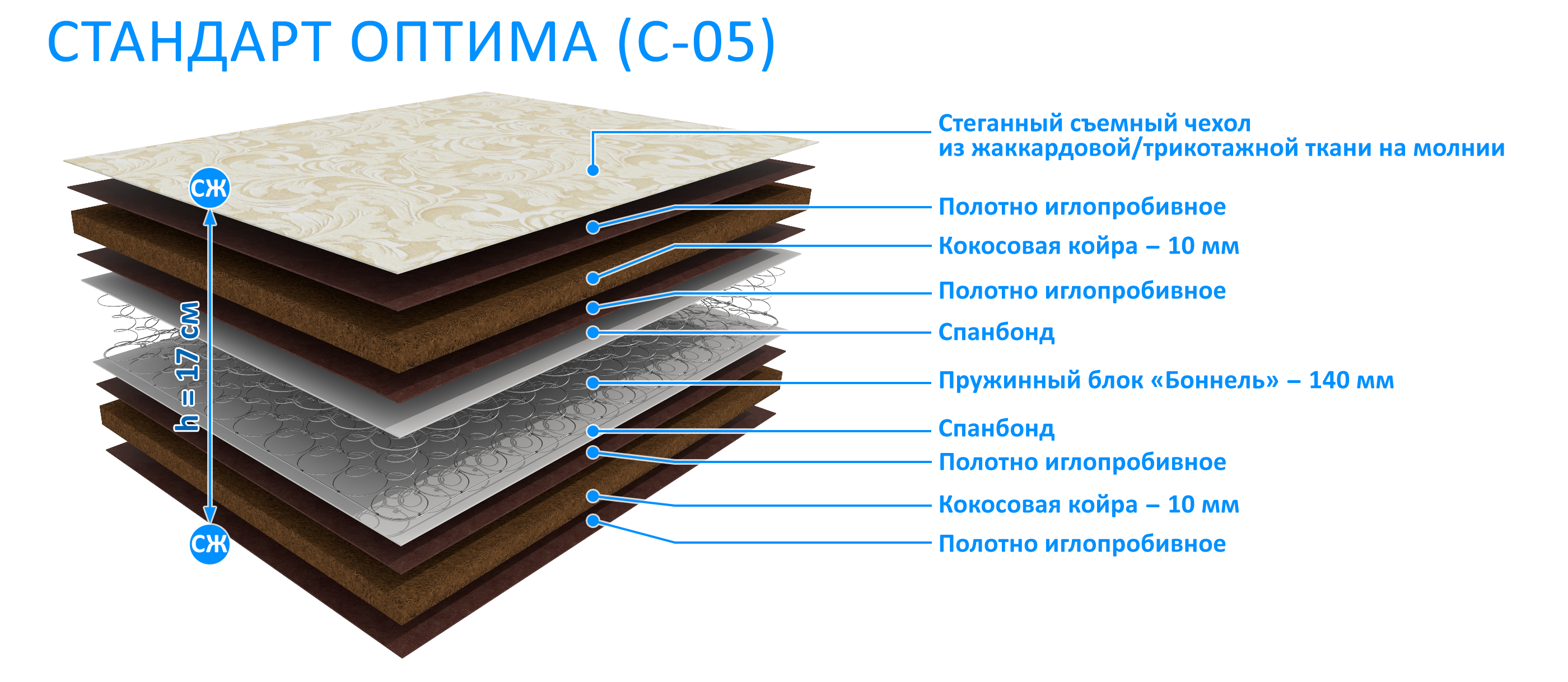 Высота матраса: 170 мм.