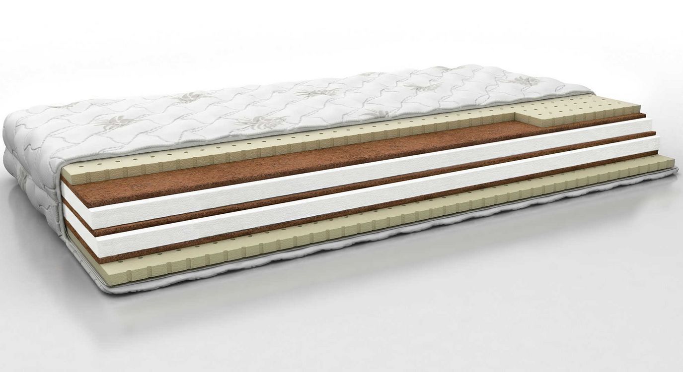 Беспружинный среднемягкий матрас из латекса, кокоса и ППУ.