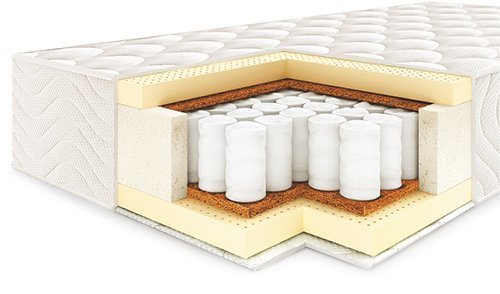 Мягкий матрас со слоями кокоса и латекса. Блок независимых пружин.
