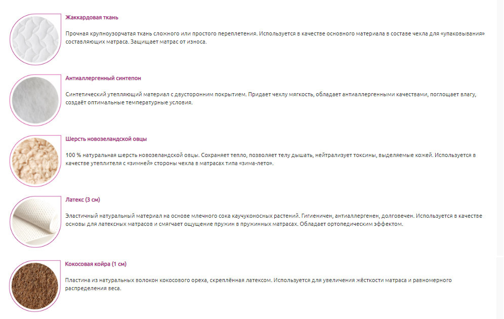Наполнение: блок независимых пружин 140 мм, кокосовая койра и латекс. Высота: 21 см.