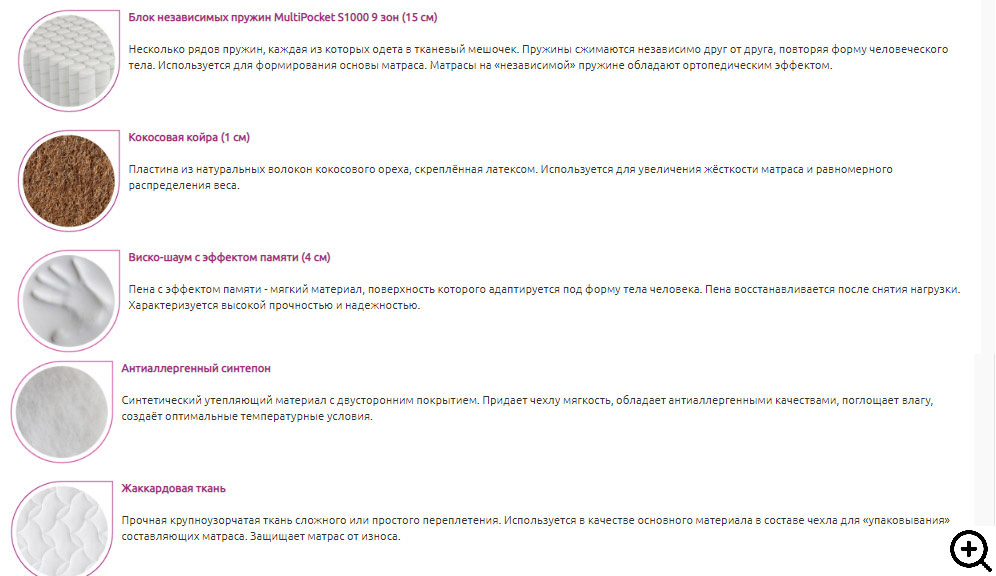 код 122459Блок независимых пружин (512шт/м2) выдерживает нагрузку до 140 кг на одно место.