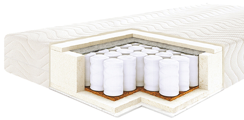 Средне-жесткий матрас с настилом из кокосового волокна и термофайбера.