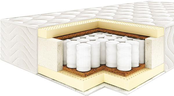 Матрас среднежесткий, внутри блок независимых пружин, кокосовое волокно и термофайбер.