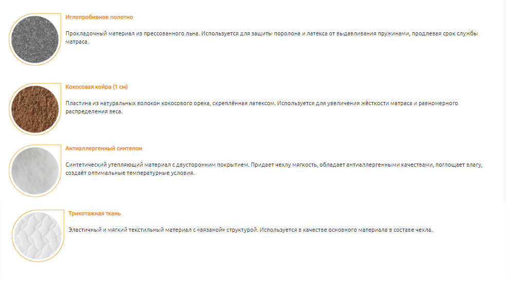 Среднежесткий матрас с независимым пружинным блоком, кокосовой койрой и термофайбером.