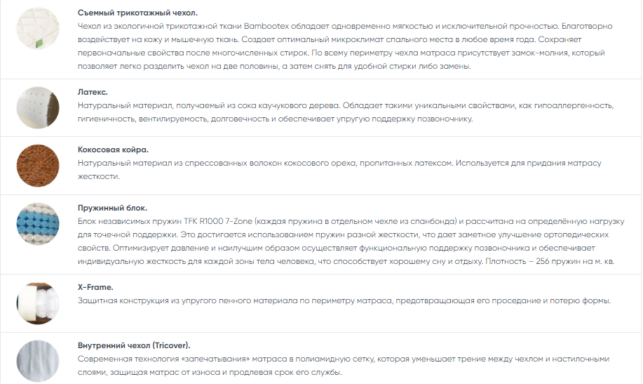 Среднежесткий матрас с независимым пружинным блоком, кокосовой койрой и термофайбером.