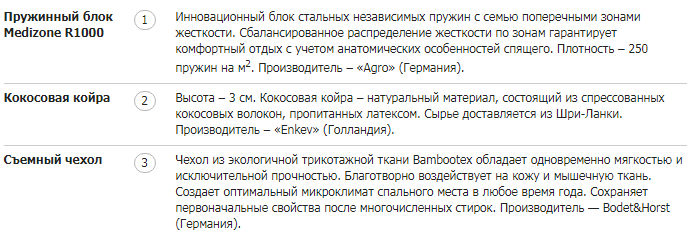 - 10 лет — на производственные дефекты монолитных латексных блоков высотой от 12 см для коллекций Ecolatex, Ultra (модель Spirit);