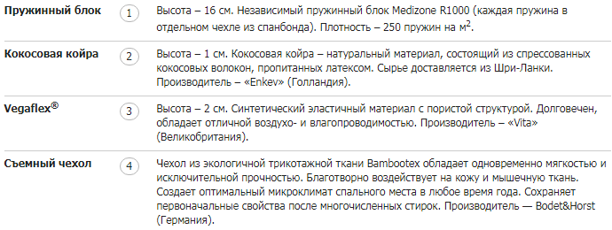 Базовый блок матраса: Medizone R1000.