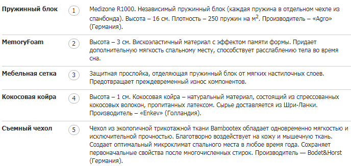 Базовый блок матраса:Medizone R1000.