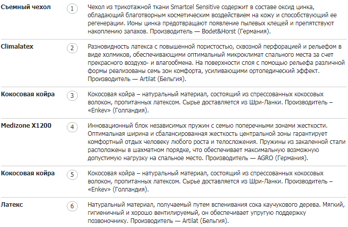 - 10 лет — на производственные дефекты монолитных латексных блоков высотой от 12 см для коллекций Ecolatex, Ultra (модель Spirit);