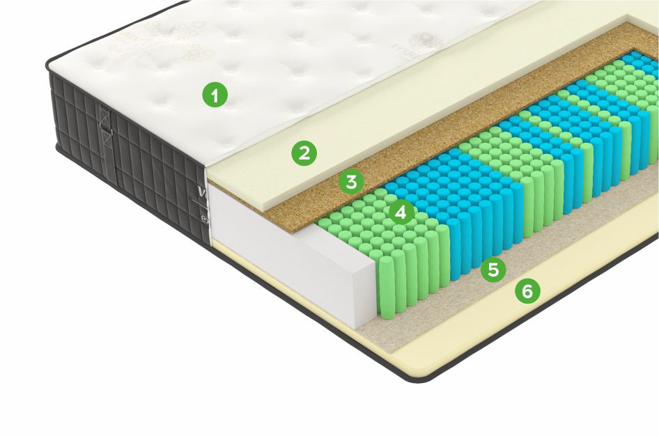- Лен. Однородный защитный слой из волокон льна, изолирует пружинный блок от мягких настилочных слоев матраса и продлевает срок их службы. Волокна льна обладают антисептическими свойствами и защищают от электростатического напряжения.