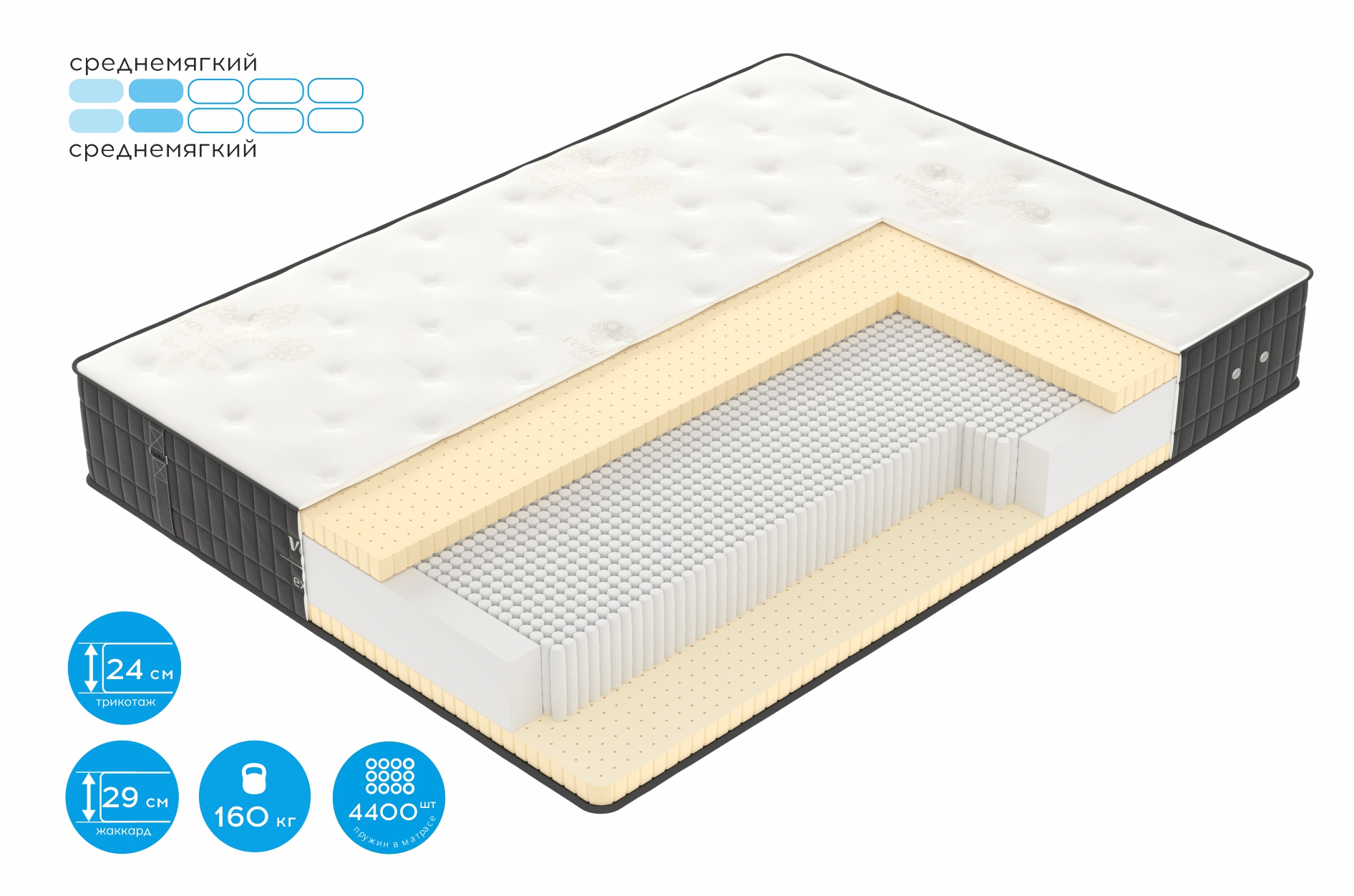 - UltraPocket R4400. Независимый пружинный блок с рекордным количеством пружин и максимальным ортопедическим эффектом. Каждая из множества тонких пружин адаптируется к оказываемой на нее нагрузке независимо от остальных, поэтому матрас идеально подстраивается под каждый изгиб тела. Диаметр пружины 26 мм. Высота пружинного блока 130 мм.