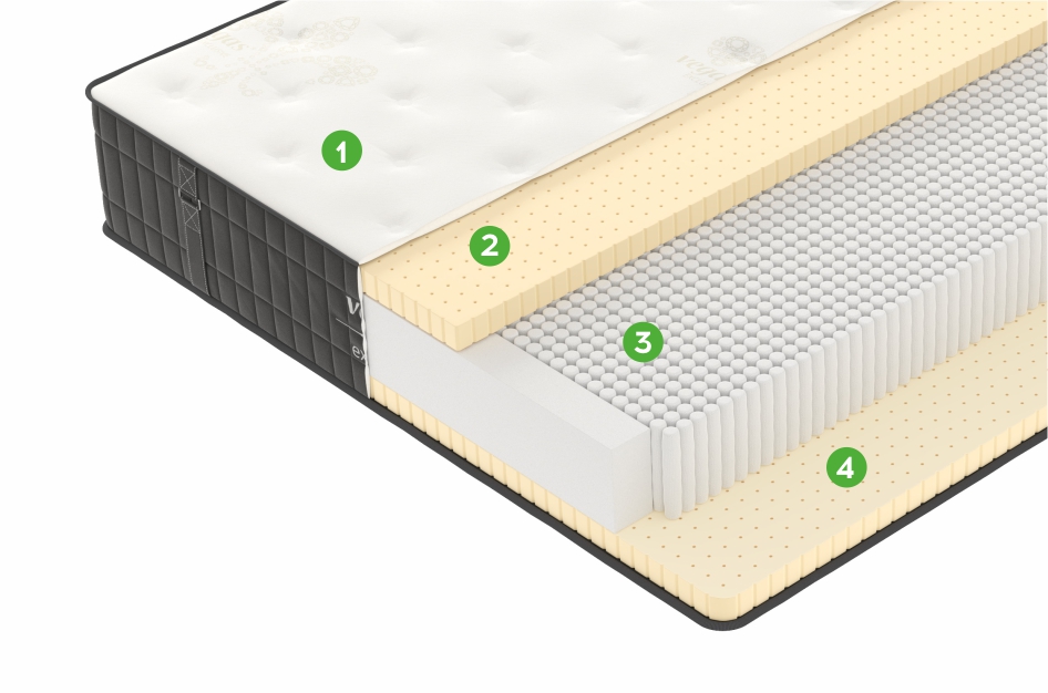 - классика премиального уровня: лаконичное сочетание дышащего латекса повышенной плотности и пружинного блока с рекордным количеством пружин;