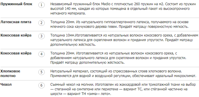 Базовый блок матраса: Блок независимых пружин Мedio.