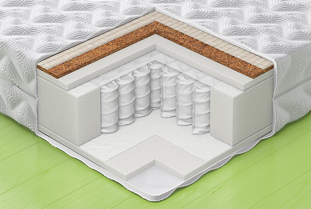 Жесткий матрас с блоком независимых пружин и кокосовым волокном.