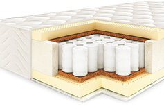 Матрас обладает двухсторонней жесткостью, безукоризненным внешним видом и высочайшими потребительскими свойствами. За счет использования мультипружинного блока 512 пружин на м2 достигается еще более выраженный ортопедический эффект в сравнении с 7-ми зонными пружинными блоками.