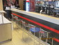 Комбинированная барная стойка сочетает в себе черный, красный и белый цвета, что придаёт ей уникальный и запоминающийся вид.