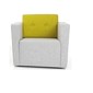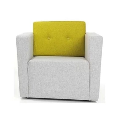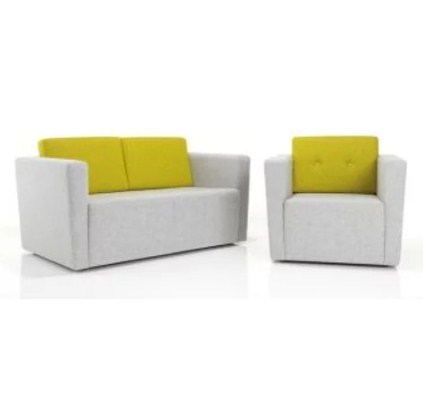 Компактный диван и кресло эргономичного размера. Основная часть конструкции в белом цвете, спинки у кресла и дивана ярко желтые. Прерасный выбор для украшения интрьера кафе либо ресторана.