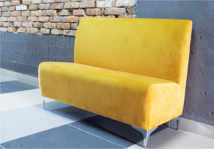 Ярко-красная обивка. Стильные хромированные опоры и декор стяжкой.