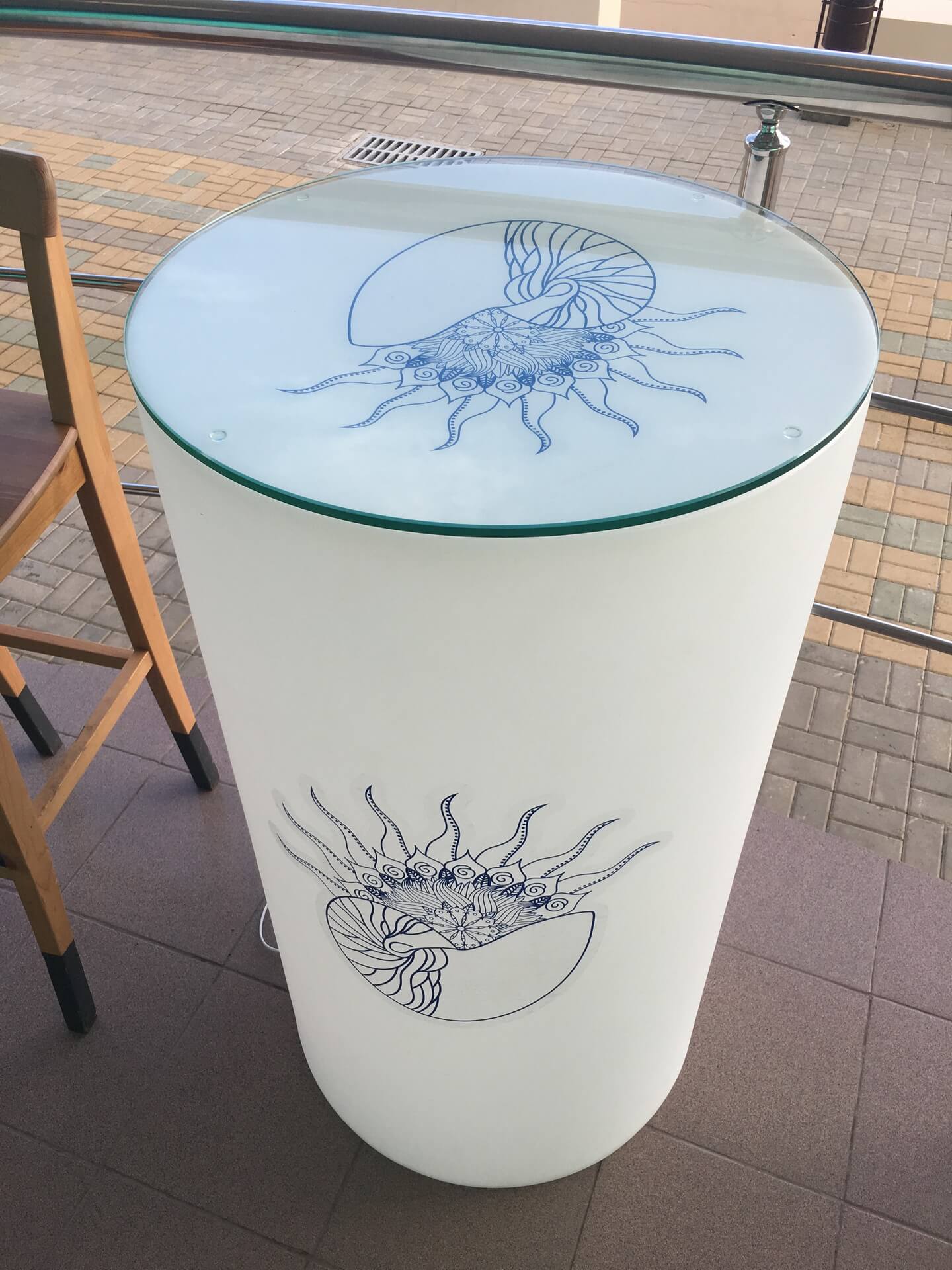 Столик Alto со светодиодной подсветкой может устанавливаться внутри помещений и на открытом воздухе. Благодаря соответствию стандарту изоляции IP 65 эту мебель можно ставить даже вблизи бассейнов, в банях и саунах.