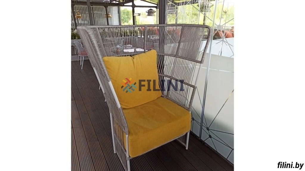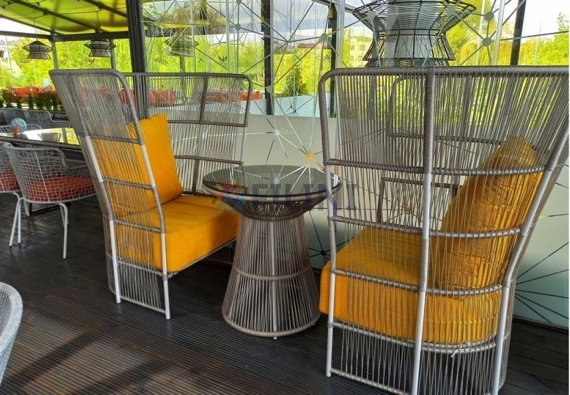 Коллекция обеденной плетеной мебели для ресторана, кафе или террасы на металлическом каркасе. Материал оплетки - полипропиленовый шнур. Выбор цвета и толщины оплетаемого материала, тип столешницы, а так же количество изделий в группе осуществляются при совершении заказа.