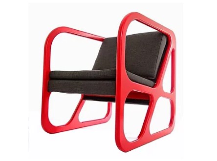 Ярко-красная обивка. Стильные хромированные опоры и декор стяжкой.