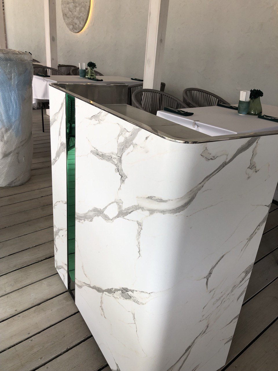 Материалы: искусственный камень, металл, шпонированное МДФ.