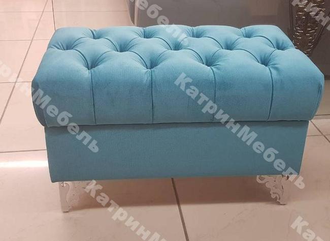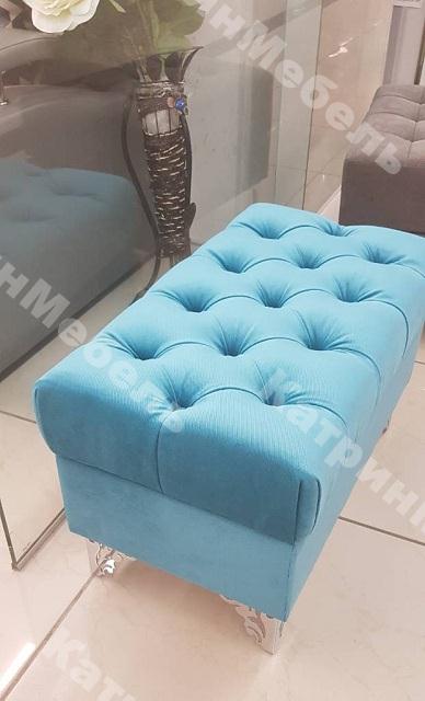 Сидение пуфа декорировано стяжкой, что придаёт ему изысканный и современный вид. Хромированные ножки необычной формы обеспечивают не только красивый внешний вид, но и устойчивость конструкции.