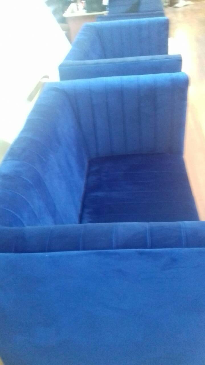 Высокие прямоугольные боковины образуют наравне со спинкой своеобразную кулису, создавая атмосферу уединенности и способствуя непринужденной беседе за романтической трапезой. Приятная на ощупь обивка глубокого оттенка ультрамарина исполнена в легкой поперечной стяжке, послужит хорошим фоном для селфи, а мягкое наполнение обеспечит комфорт гостей. Все материалы и цвет можно изменить при заказе на выбор покупателя.