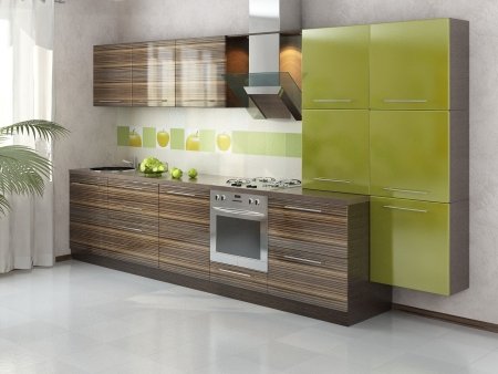 Кухня Салатовый глянец – Вудлайн кремовый
