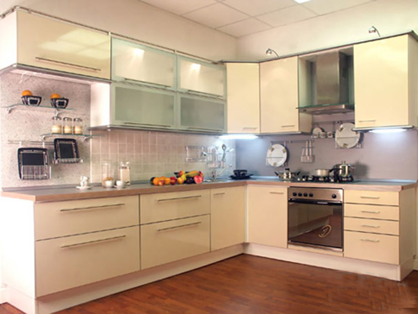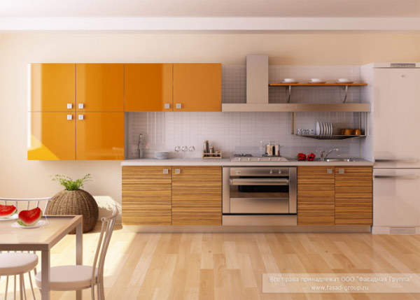 Фасады МДФ светло-желтого цвета. Вставки лакомата.