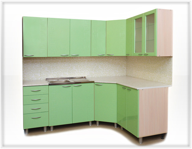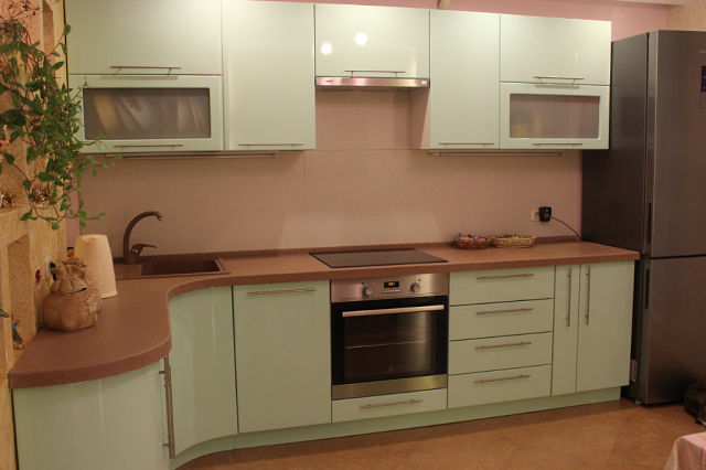 Корпус - ЛДСП Кронопол, фасады из пластика в алюминиевом профиле, цвет - фисташка.