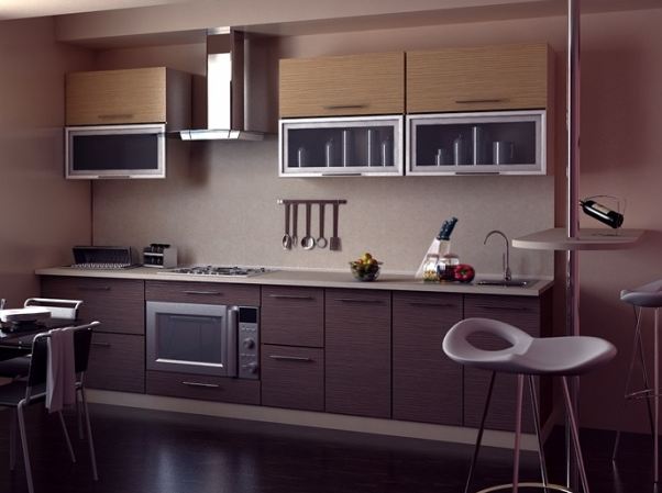 Барная стойка. Двери верхних шкафов с вертикальным открытием.