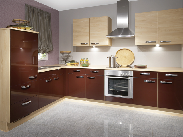 Фасад светло-бежевого и цвета венге. Место для духового шкафа.