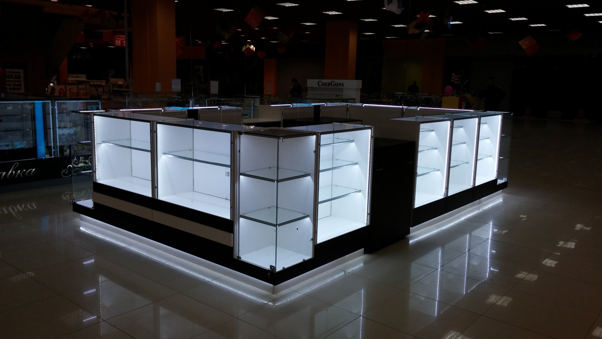 Нестандартный дизайн. Светодиодная подсветка витрин.