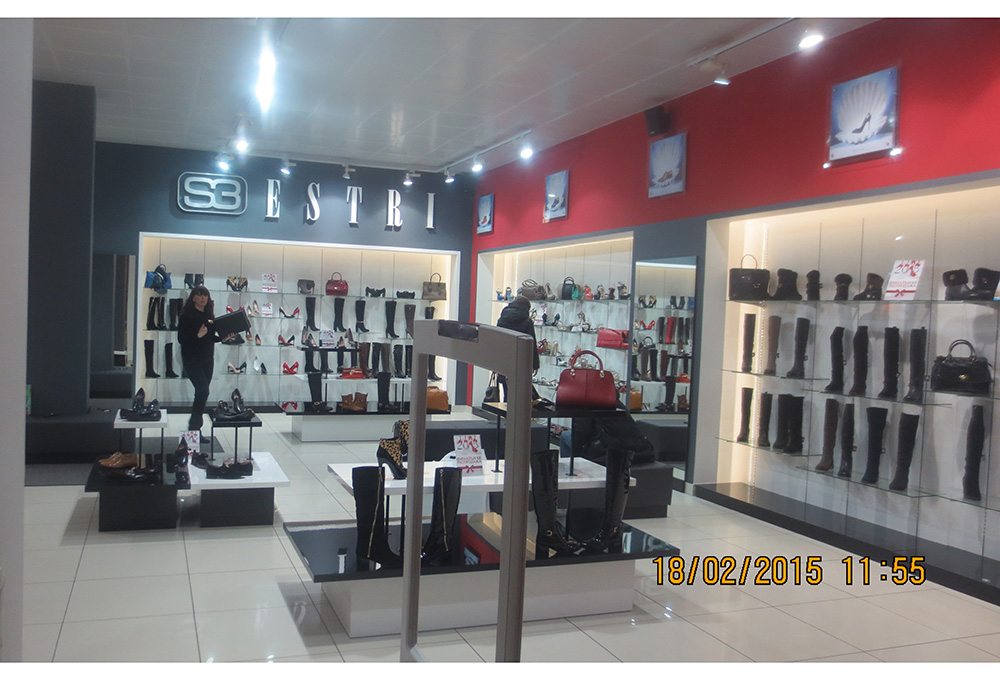 Набор мебели для обувного магазина сочетает в себе современные направления в дизайне и высокую функциональность. Стеллажи оборудованы широкими стеклянными полками, удобными для размещения товара. Торговый зал оборудован островками с глянцевой столешницей.