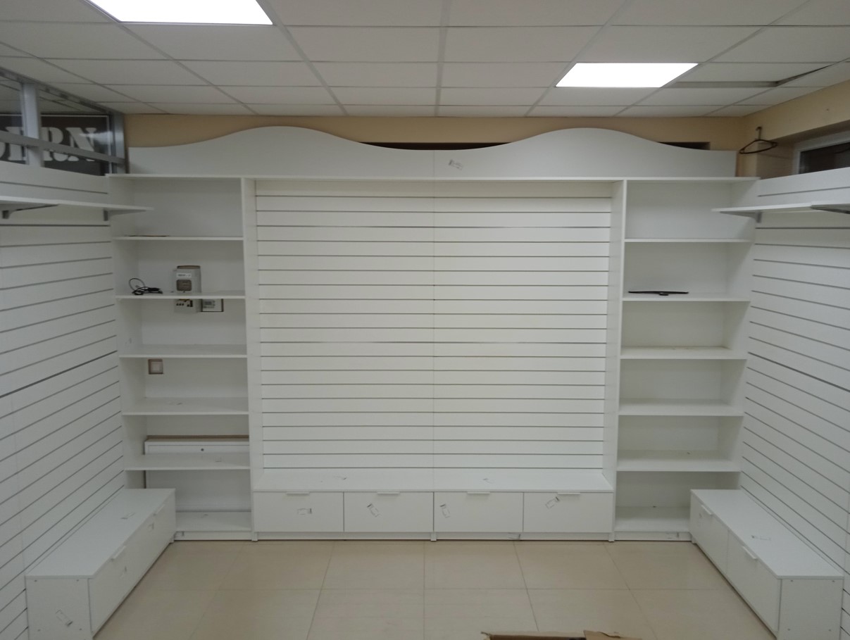 код 138037Тумбы с ящиками, полки, витрины с роллетами.