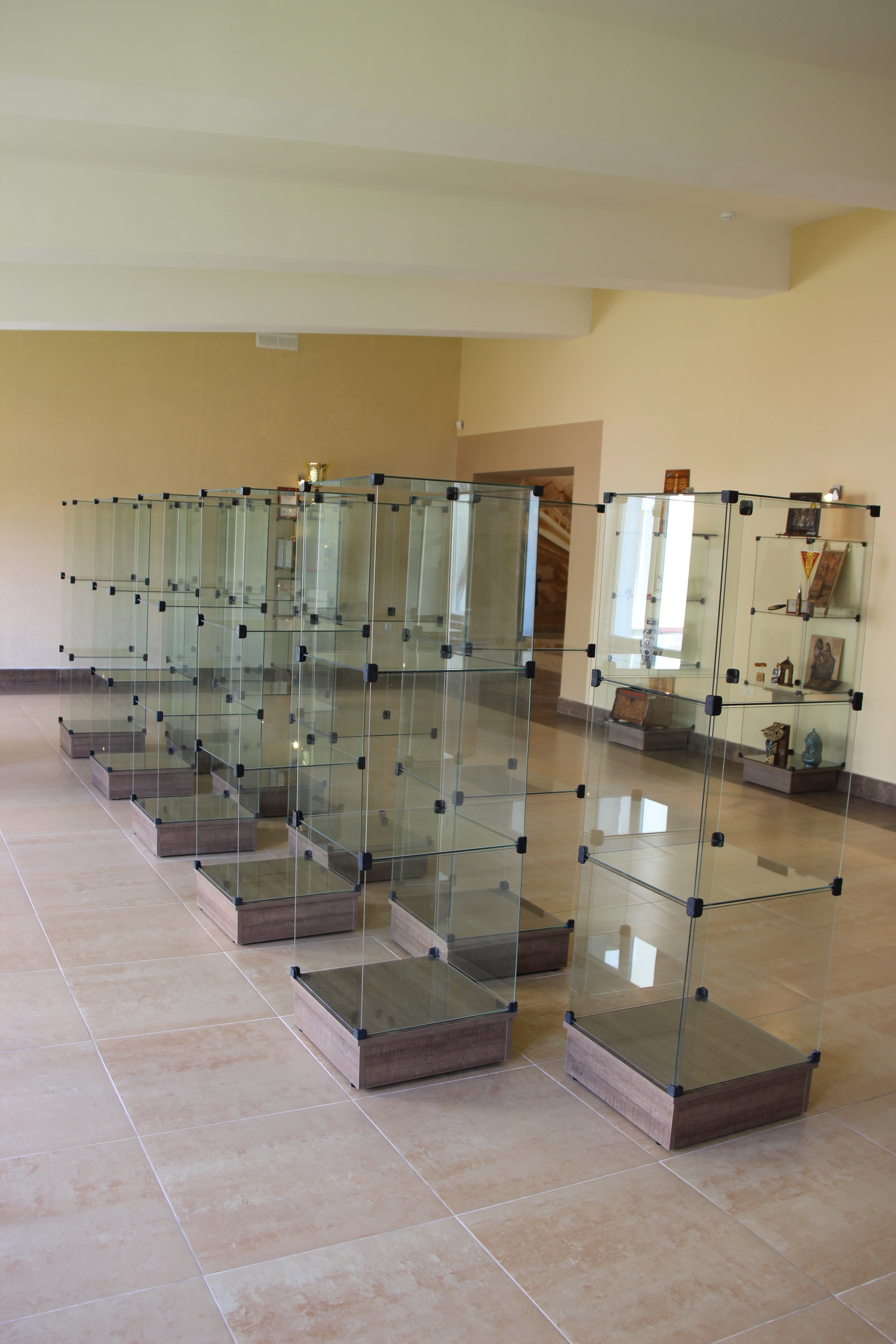 Четырехсторонние прозрачные витрины. Панели для навески люстр.