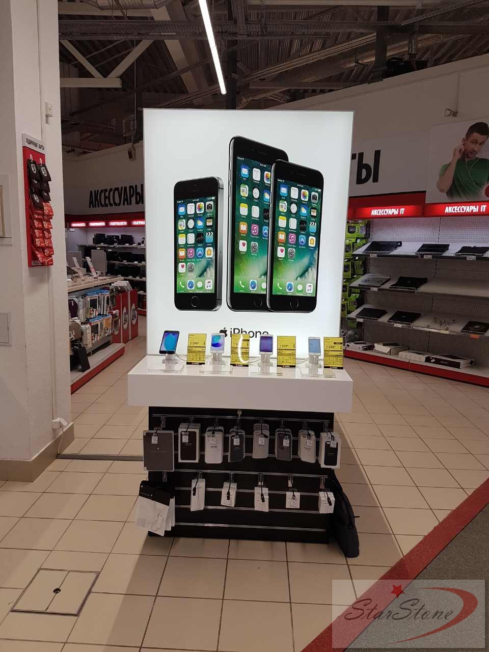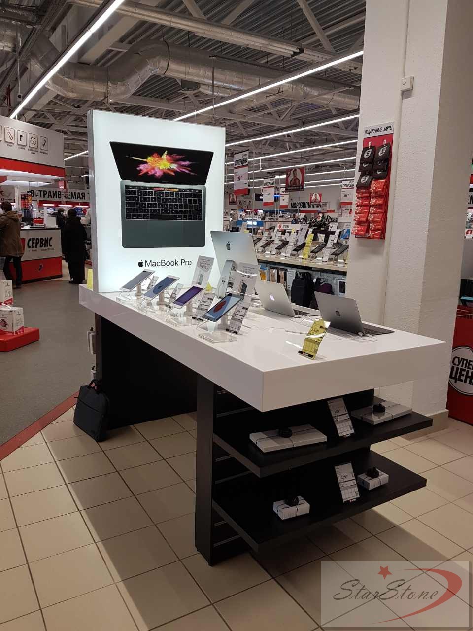Стильное оформление. Полки и стенды с удобным обзором.